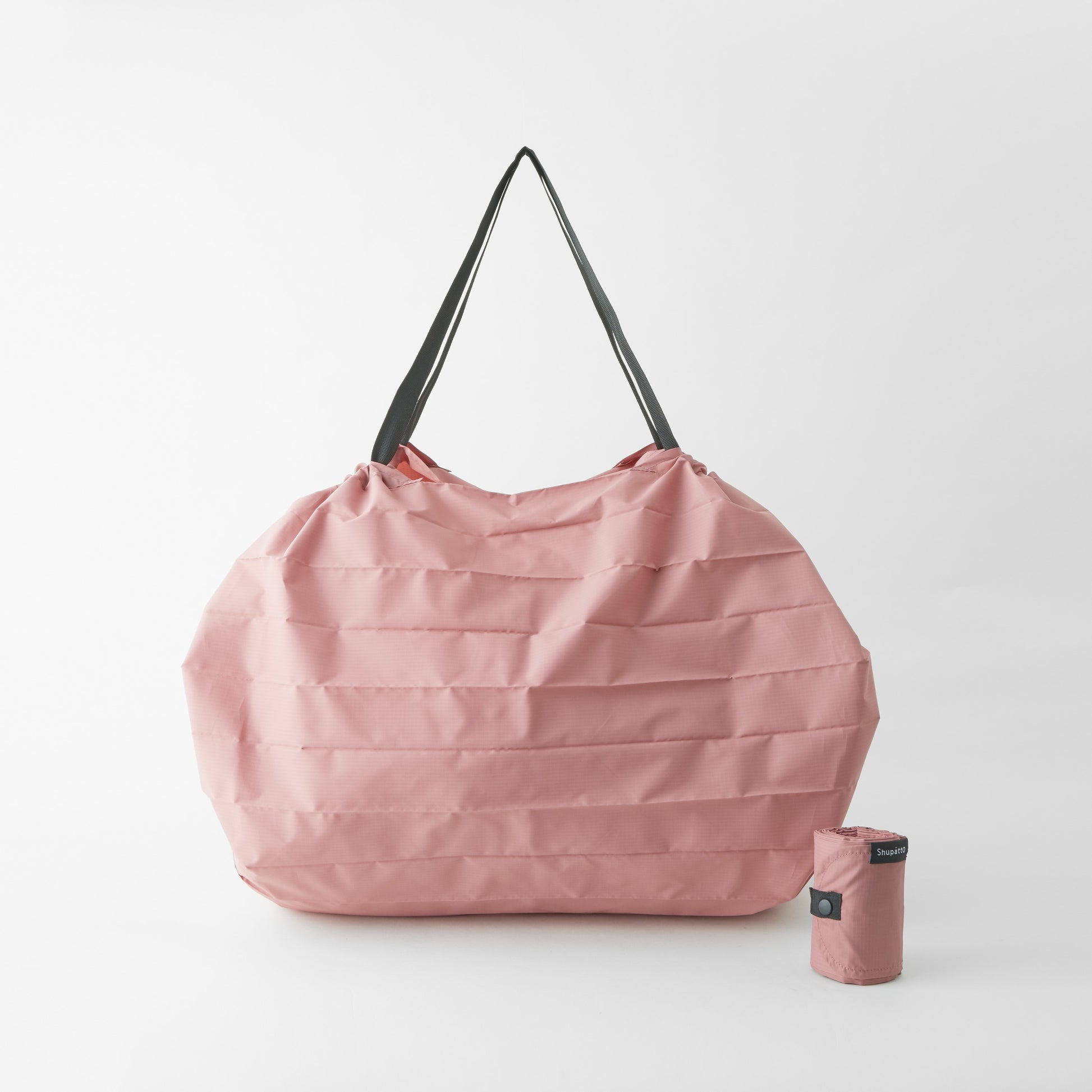 Shupatto Small is pocketable and perfect for carrying around. Designed to fit into your handbag or pocket and ready to be used whenever you need it. Can take 6pcs of 500ml plastic bottle. Also, perfect for your lunch and a trip to the corner store.